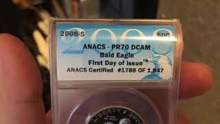 - 2008 MS70 ANACS Silver Eagle Dollar Coin